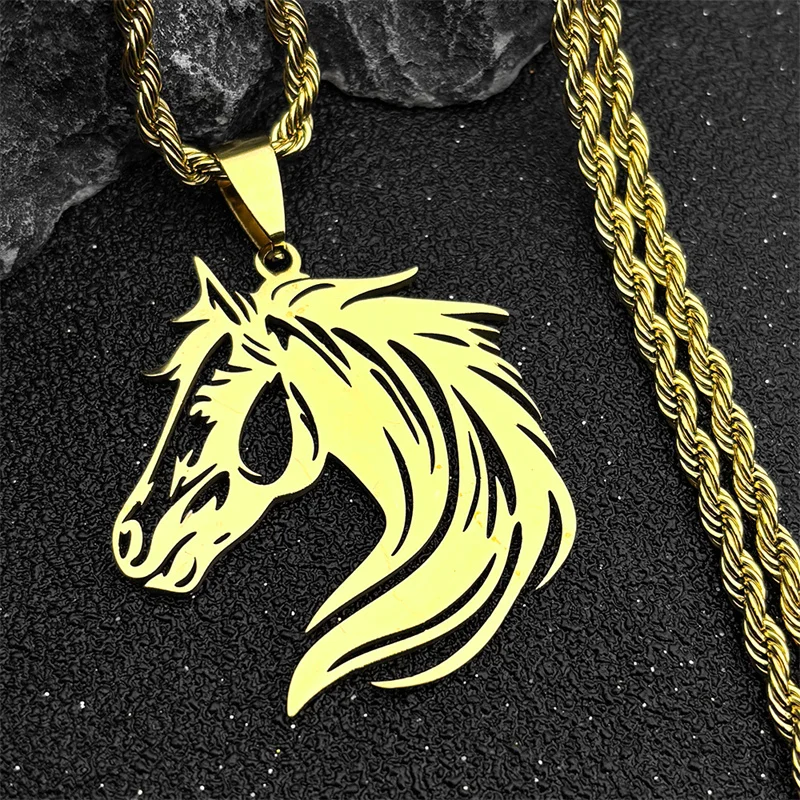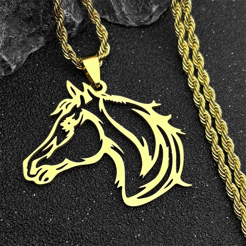 Aesthetic Horse animal Pendant Stainless steel gold/Silver color Fashion jewelry Women Men's Necklace Bracelet Accessories